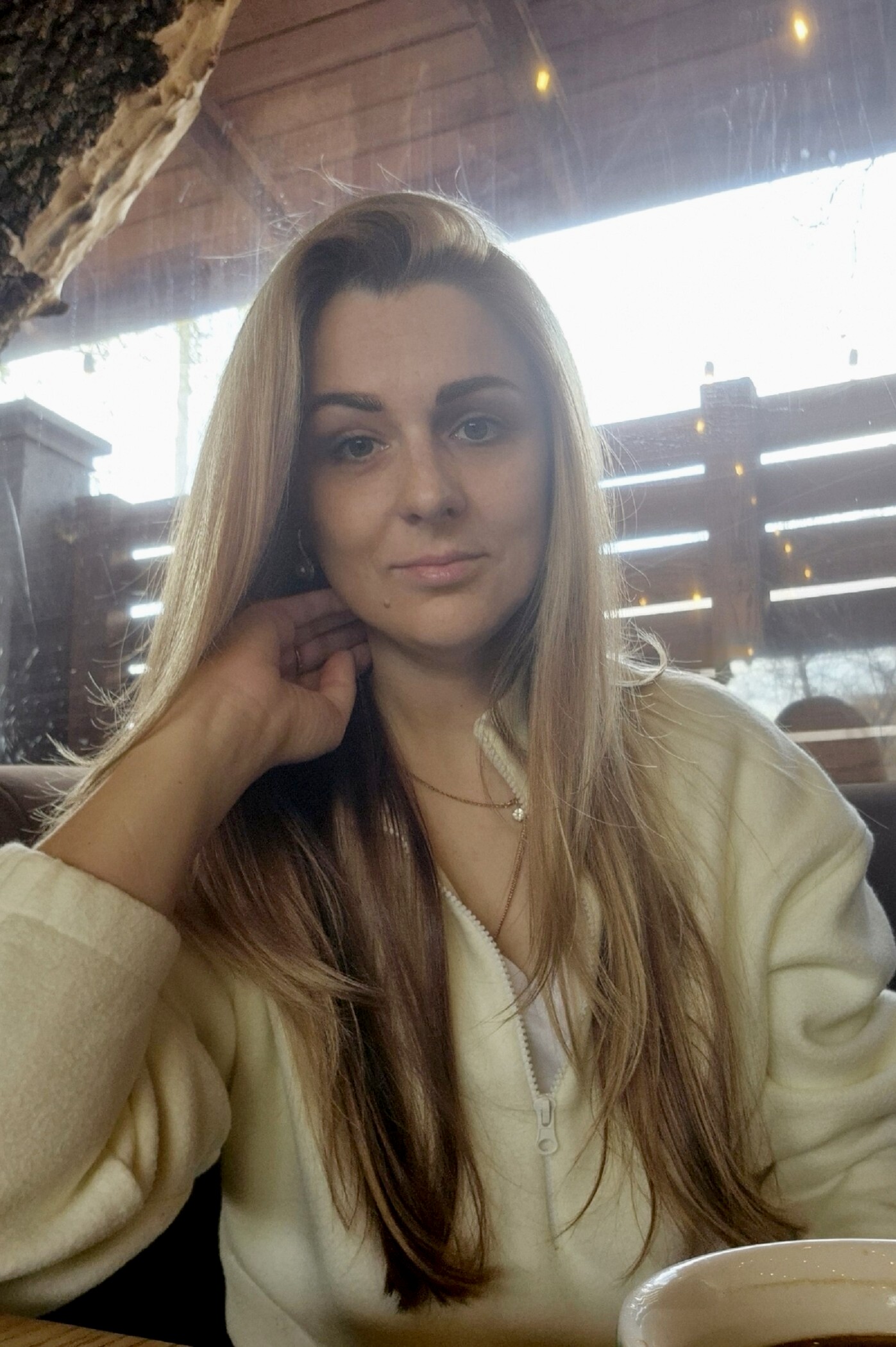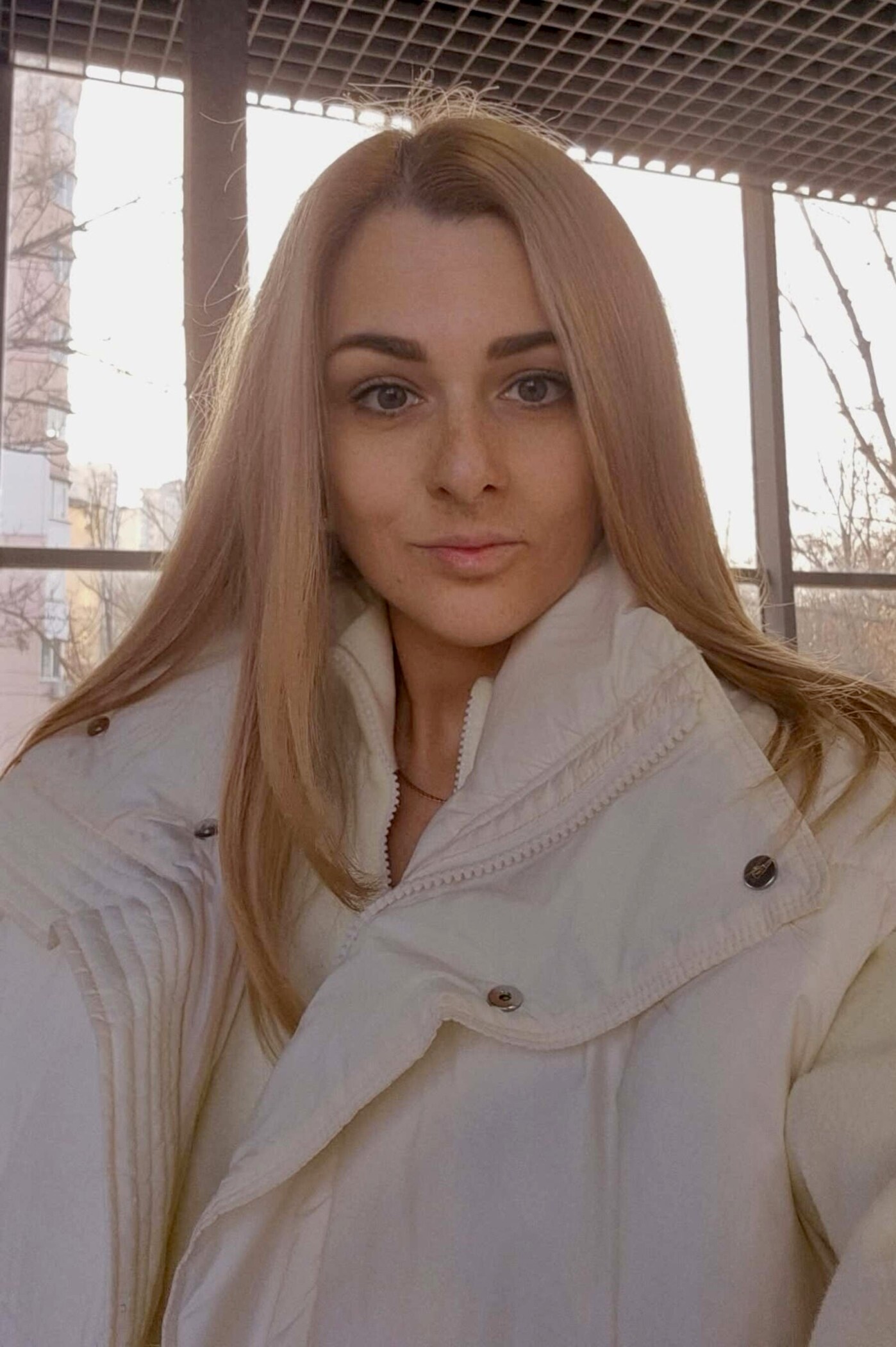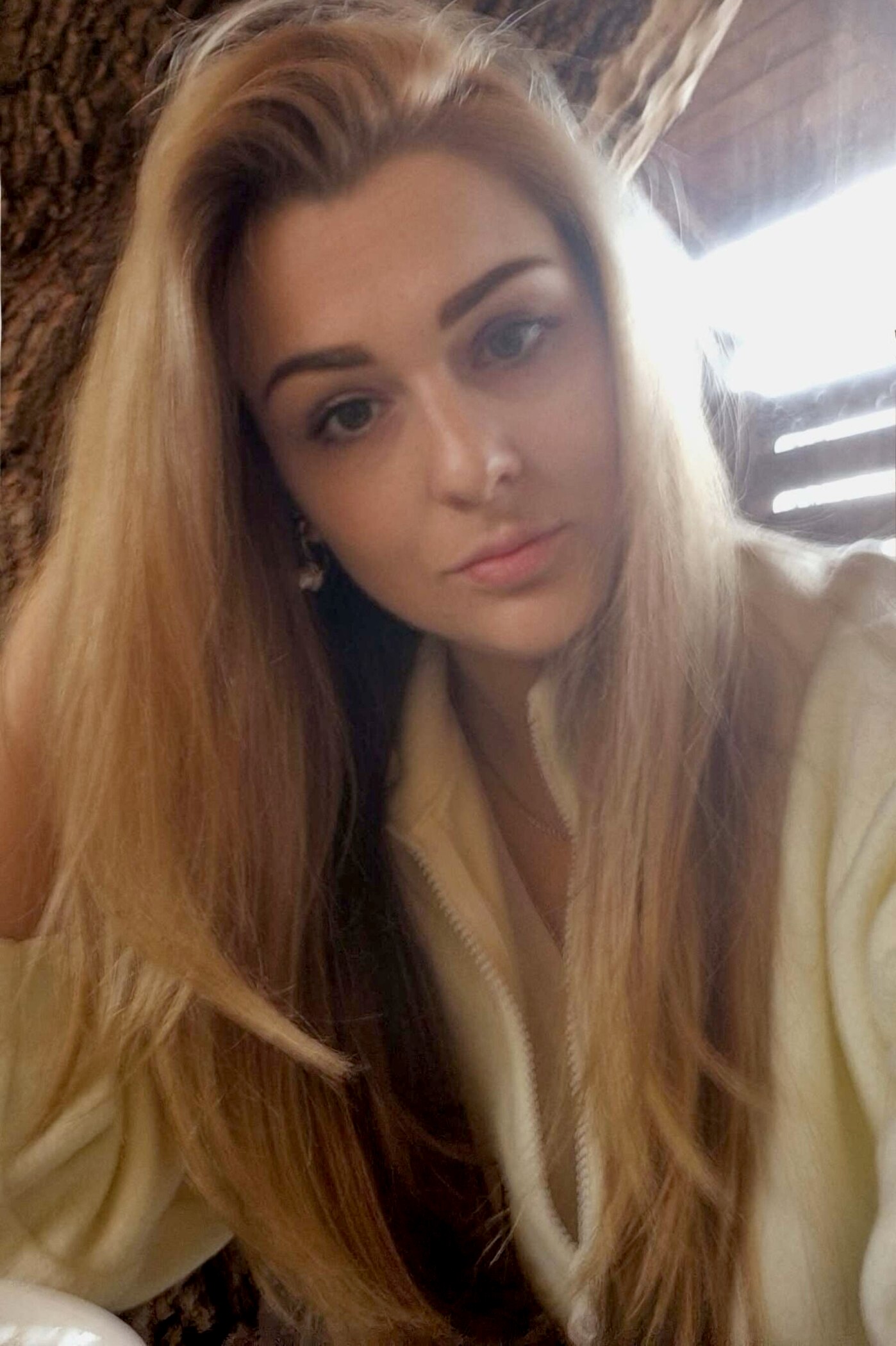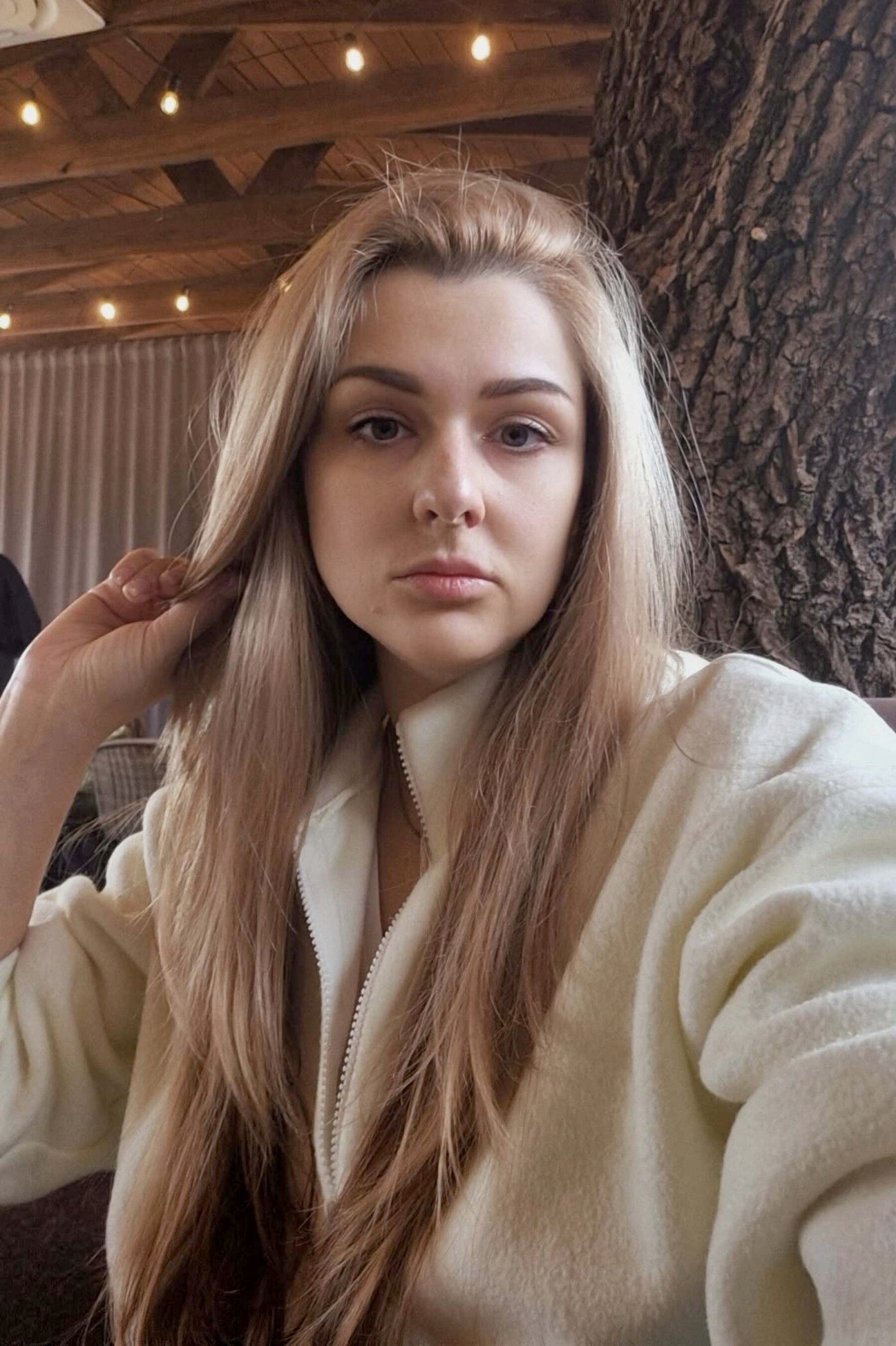 - Blonde hair with soft natural tones that catch the